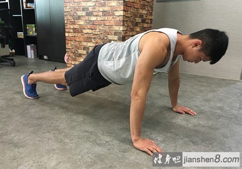 2、直至身体双脚伸直,成俯卧撑姿势。