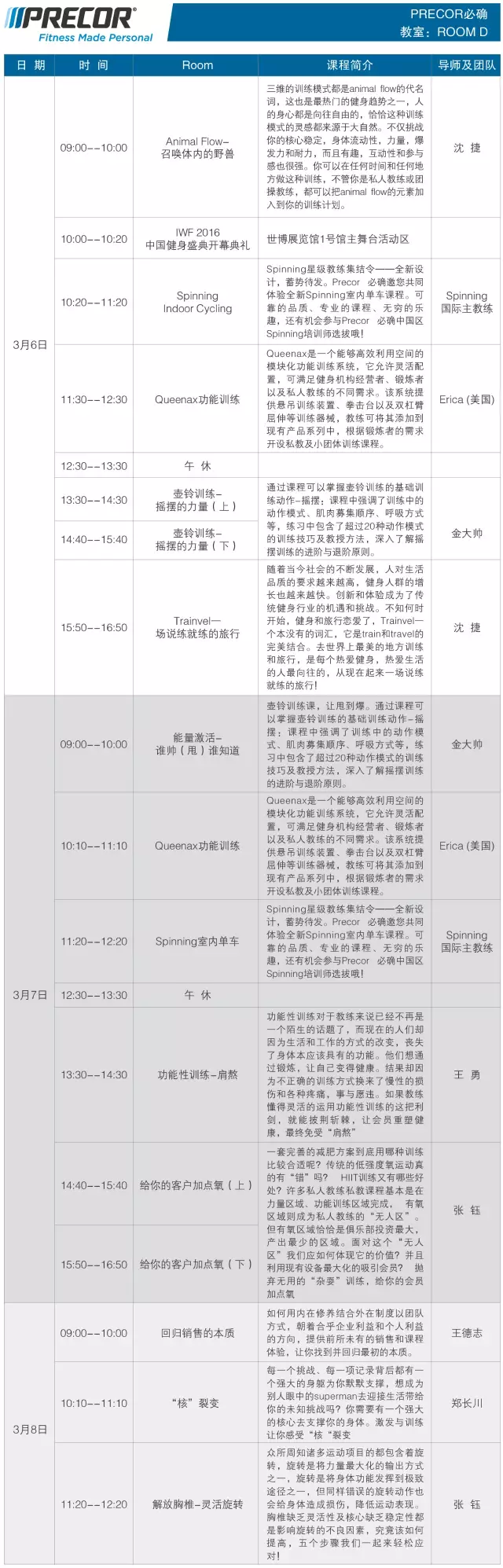 并提供给中国的教练们世界流行、新潮和酷炫的课程,以激励人心的课程不断激发教练和健身爱好者们的潜能,挖掘内心的那份坚持;同时以先进的会议计划和专业管理、培训课程助力俱乐部运营,洞悉行业未来发展走向,为中国健身行业发展注入创新动力。