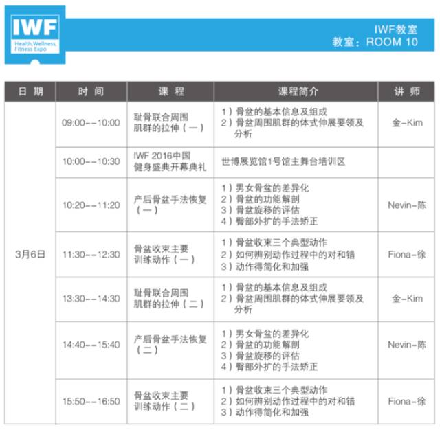 IWF 2016中国健身盛典由IWF SHANGHAI 组委会精心打造,每年3月在上海举行,由专业培训教室区和创新科技健身康体展区两部分组成。